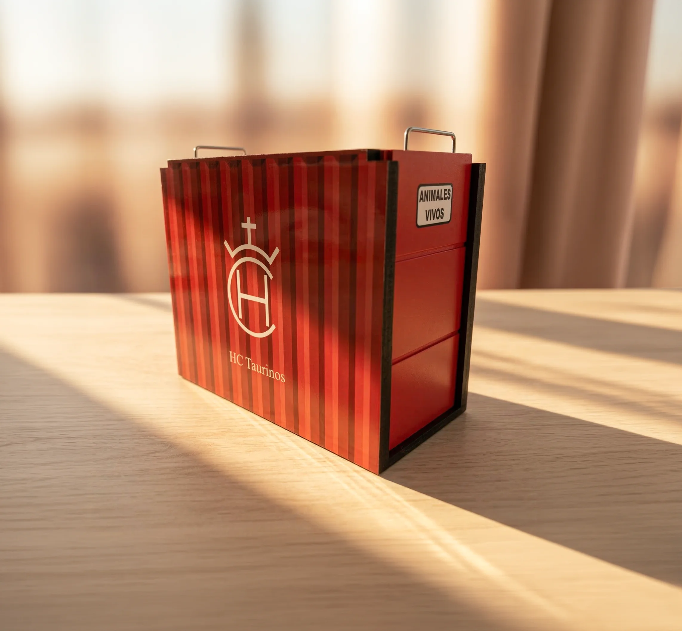 Artículo realizado con pvc y recubierto con vinilo. En el podrás guardar un toro para su transporte hasta el desencajonamiento, dispone de dos tajaderas con asa metálica que se extraen verticalmente.